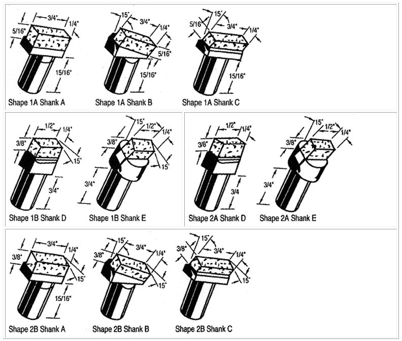 Impregnated Diamond Dressing Tools consist of a metal matrix with small particles of diamond distributed uniformly throughout the matrix. In many applications Impregnated Diamond Dressing Tools offer advantages over single point dressers. They are especially cost effective for dressing larger grinding wheels, such as centerless wheels. Impregnated tools allow greater depths of dress than single point dressers. Impregnated tools can withstand harsher use which would burn or crack single point diamonds. These tools should be used up completely and never require resetting.-