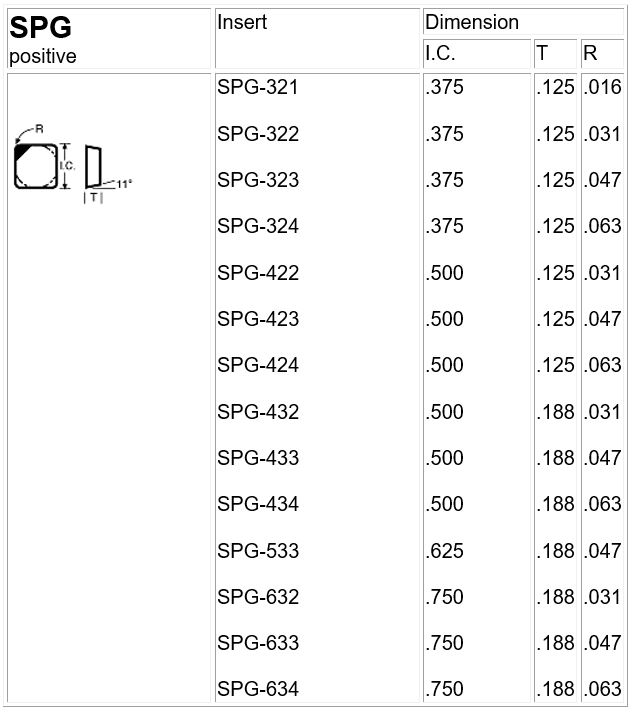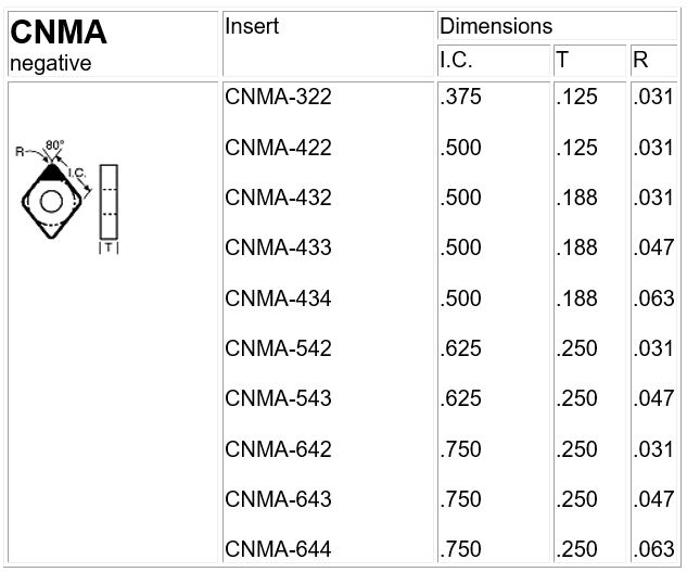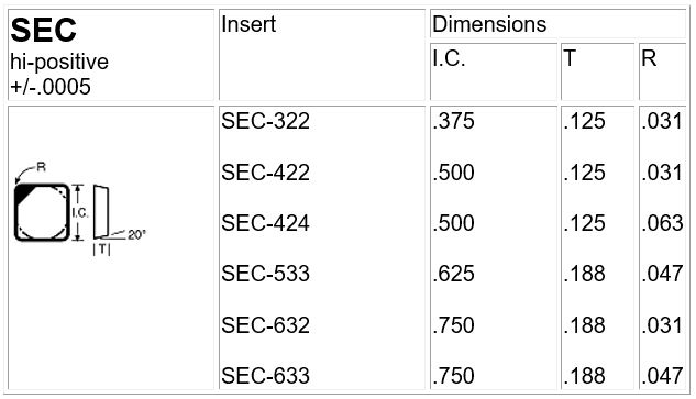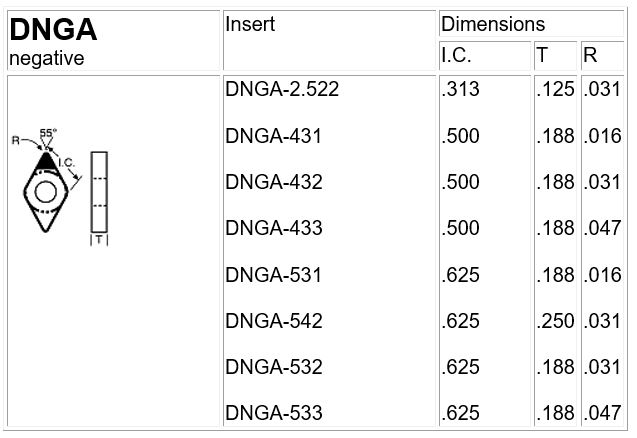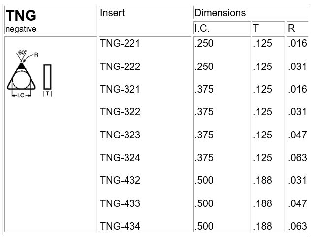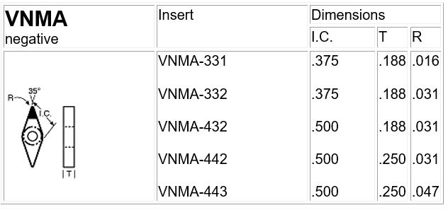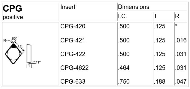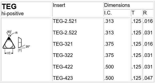 All inserts available 1/8″ long or ¼” long cutting edge.